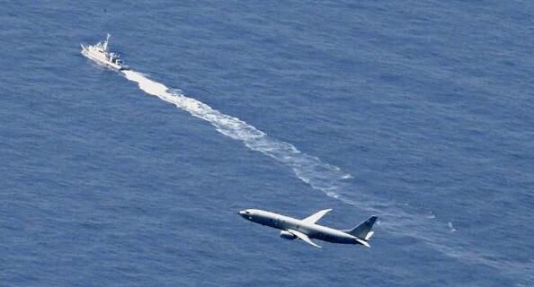资料图片:参与搜寻坠海F-35战机残骸的日本海自舰艇及美军P-8巡逻机。