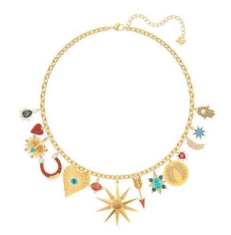 Lucky Goddess頸鏈集齊翅膀、馬蹄鐵、貝殼、太陽等各具幸運意義的串飾。