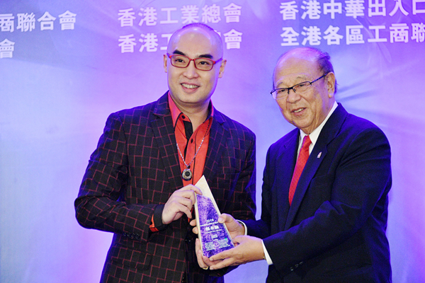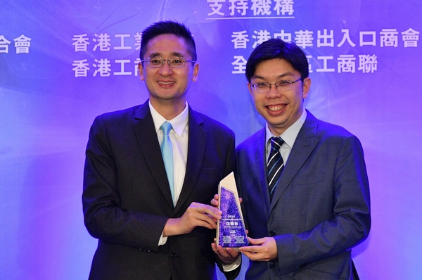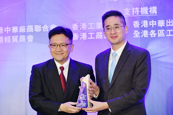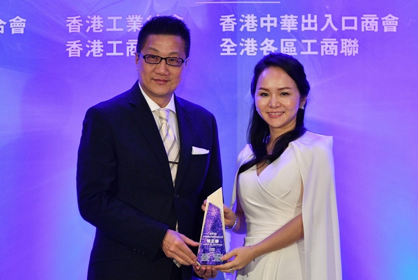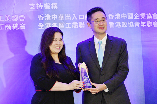 商務及經濟發展局署理局長陳百里將獎座頒發給沈慧林(右)。