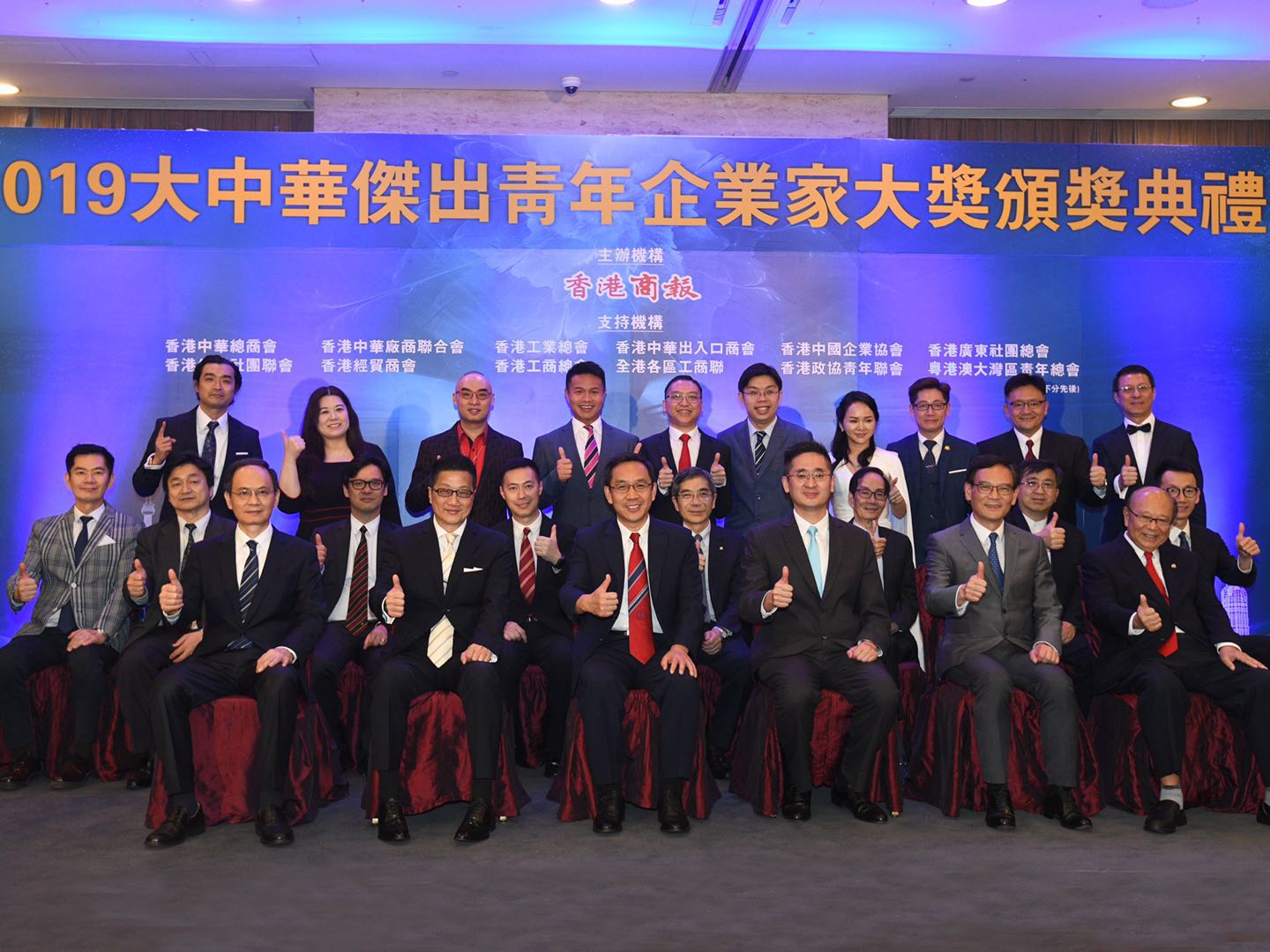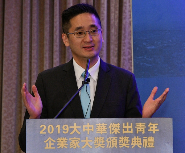 2019大中華傑出青年企業家大獎頒獎典禮上,10名傑出青年企業家、支持機構與主禮嘉賓合照。記者 蔡啟文攝
