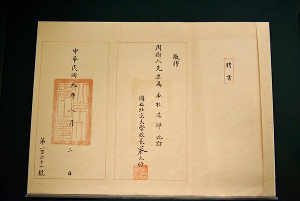圖為魯迅任北京大學國文系講師的聘書。