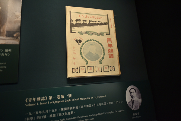 展覽其中展示1915年陳獨秀創刊的《青年雜誌》。