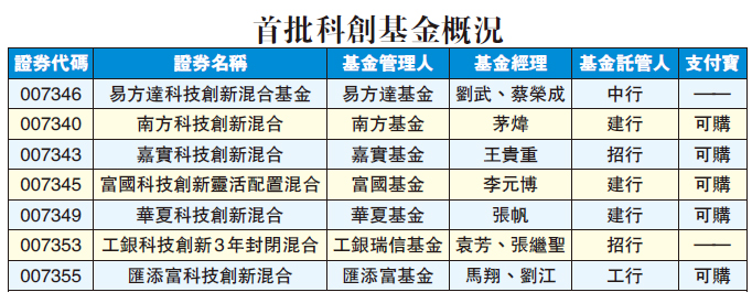 具體來看,投資者較為常用的第三方基金銷售平台——支付寶和騰訊理財通,已在26日下午3點上線5隻科創主題基金,分別為:華夏科技創新混合型證券投資基金、富國科技創新靈活配置混合型證券投資基金、嘉實科技創新混合型證券投資基金、匯添富科技創新靈活配置混合型證券投資基金、南方科技創新混合型證券投資基金。