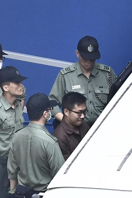 陳健民身穿囚衣及鎖上手銬,在荔枝角收押所由囚車押往壁屋監獄服刑。