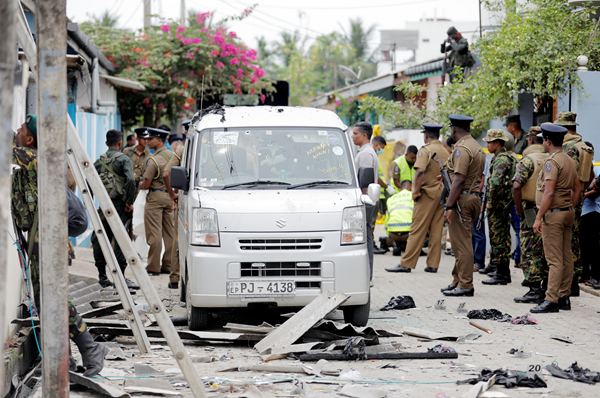 斯里蘭卡安全人員當地時間27日在事發地警戒。路透社