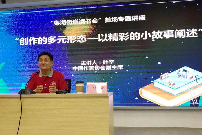 在粵海街道高新區社區黨群服務中心2樓報告廳里,坐滿了約200位聽眾,粵海街道讀書會首場重磅講座邀請到中國作協副主席葉辛,他以「創作的多元形態一一以精彩的小故事闡述」為題,用黃河大合唱歌詞是怎樣創作出來的,現在岳陽樓牌匾郭沫若題字由來兩個生動小故事,講述藝術進入的角度可以多種多樣。他說,這樣故事還有20多個。他繪聲繪色的講述,打開了創作新的視角,不時引來現場聽眾們陣陣笑聲。