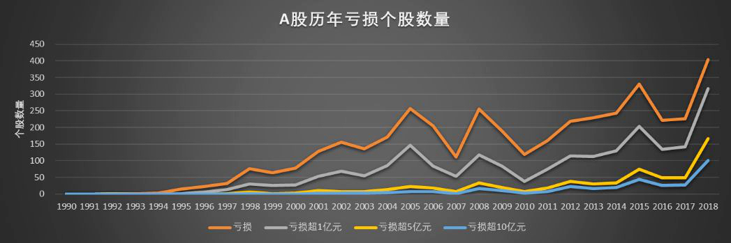 其中,已有403股宣告年報虧損、同比增長78.32%,虧損股佔比達到11.65%、同比增加5.39個百分點,有316股虧損超1億元,有216股虧損超3億元,有166股虧損超5億元,有10股虧損超100億元,有20股虧損超30億元,上述數據均刷新了A股歷史紀錄。