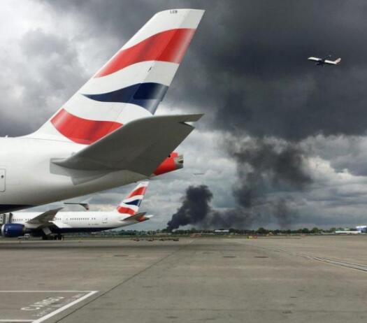 现场分享的照片显示,希思罗机场北部的天空中弥漫着巨大的黑烟。