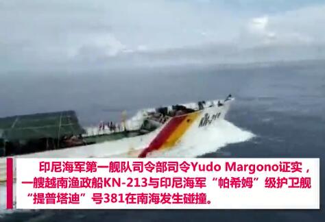 4月28日,印尼海军第一舰队司令部司令Yudo Margono向印尼媒体证实,一艘越南渔政船KN-213与印尼海军帕西姆级护卫舰381 KRI Tjiptadi“提普塔迪”号在南海发生碰撞。