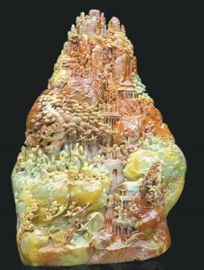 據了解,東方國石是深圳本土的文化企業,旗下東方國石館展示面積達8000餘平方米,館藏國石藝術珍品上萬件。深圳杭州商會會長、東方國石董事長胡惠康向記者介紹,今年是東方國石第三次參展文博會,前兩屆參展分別摘取了第十三屆、第十四屆文博會中國工藝美術文化創意獎特別金獎、金獎。今年東方國石為藝術注入愛的品格,據胡惠康介紹,東方國石這次精心挑選的16件國石和翡翠藝術精品,均採用稀少的珍貴石料雕刻而成,或古典山水樓台,或花鳥動物、瓜果植物,或傳說故事。作品兼具奔放大氣和細膩精巧的特質,一刀一鑿巧奪天工,光彩四溢,寓意祥和。它們既展現了大自然不朽的造化之功,也凝聚了藝術大師們追求完美的工匠精神,具有很高的鑒賞與收藏價值。