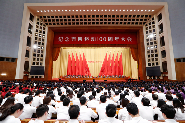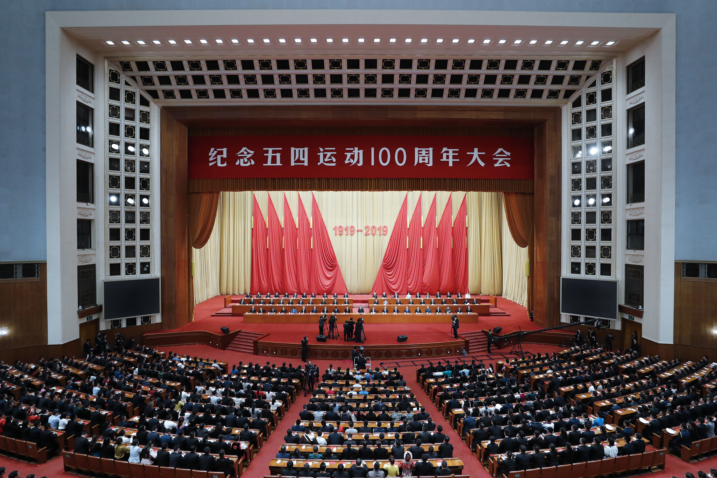 4月30日,纪念五四运动100周年大会在北京人民大会堂举行。中新社