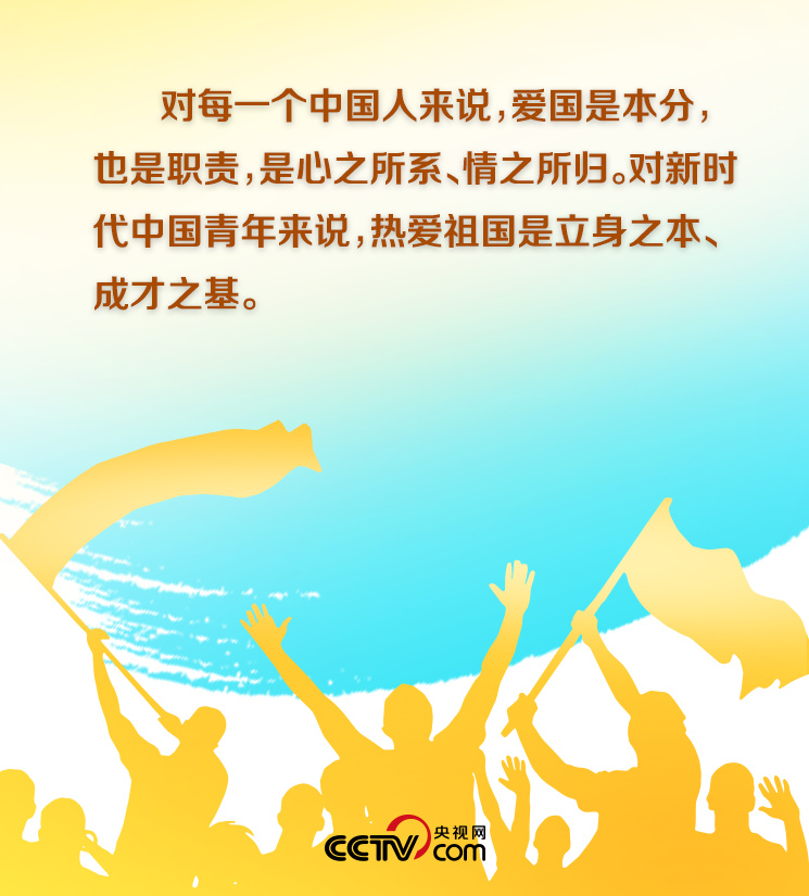 孙中山先生说,做人最大的事情,“就是要知道怎么样爱国”。一个人不爱国,甚至欺骗祖国、背叛祖国,那在自己的国家、在世界上都是很丢脸的,也是没有立足之地的。对新时代中国青年来说,热爱祖国是立身之本、成才之基。