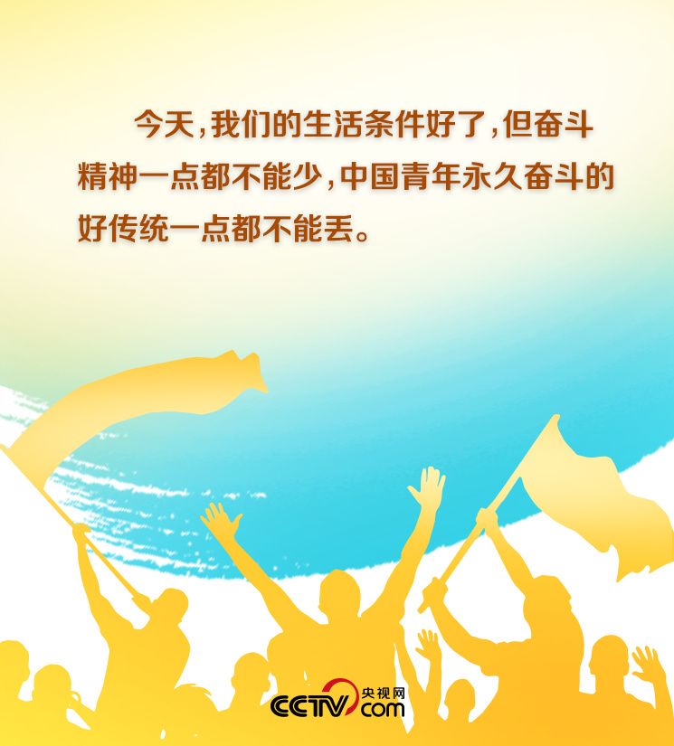 ◆千百年来,中华民族历经苦难,但没有任何一次苦难能够打垮我们,最后都推动了我们民族精神、意志、力量的一次次升华。今天,我们的生活条件好了,但奋斗精神一点都不能少,中国青年永久奋斗的好传统一点都不能丢。