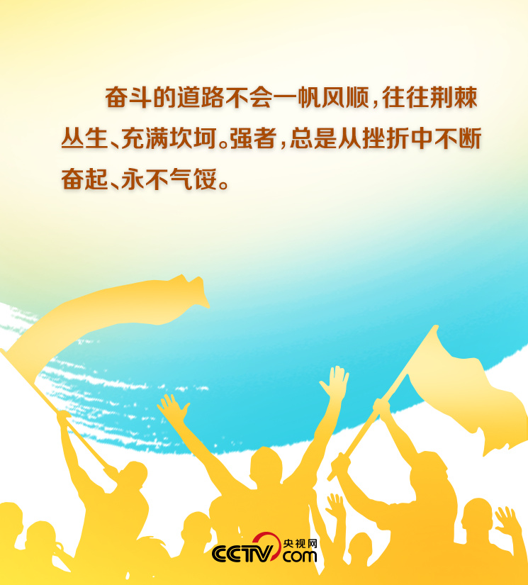 奋斗不只是响亮的口号,而是要在做好每一件小事、完成每一项任务、履行每一项职责中见精神。奋斗的道路不会一帆风顺,往往荆棘丛生、充满坎坷。强者,总是从挫折中不断奋起、永不气馁。