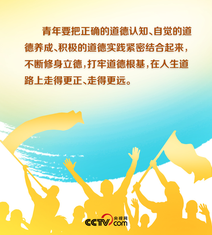 新时代中国青年要自觉树立和践行社会主义核心价值观,善于从中华民族传统美德中汲取道德滋养,从英雄人物和时代楷模的身上感受道德风范,从自身内省中提升道德修为,明大德、守公德、严私德,自觉抵制拜金主义、享乐主义、极端个人主义、历史虚无主义等错误思想,追求更有高度、更有境界、更有品位的人生,让清风正气、蓬勃朝气遍布全社会!