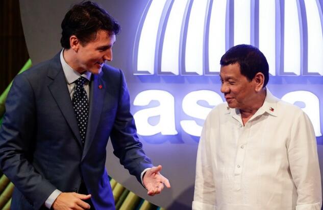 加拿大总理特鲁多与菲律宾总统杜特尔特(资料图)