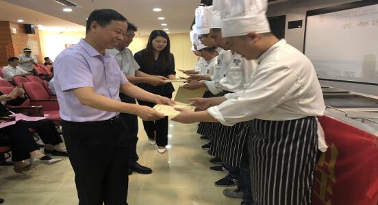 4月28日,花都“粤菜师傅”工程第一期培训班结业典礼在顺德职业技术学院顺德厨师学院隆重举行。广州市花都区人力资源和社会保障局、顺德区民政人社局、顺德职业技术学院、顺德厨师学院、区技工学校等领导和相关部门负责人共60余人参加了结业典礼。