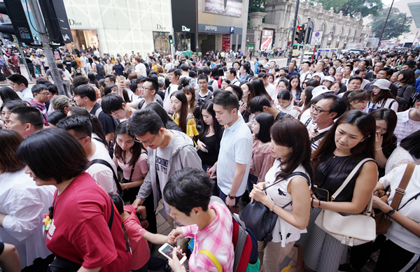 「五一黃金周」內地訪港旅客大增。圖為尖沙咀廣東道一帶人潮湧動。中新社