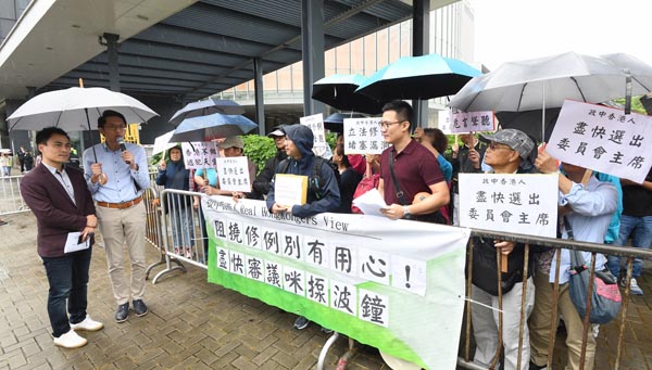 「政中香港人」在立法會外高呼「立法修例堵塞漏洞,阻撓修例別有用心,盡快審議咪揼波鐘」等口號。發言人林偉康希望修訂《逃犯條例》法案委員會盡快選出主席,討論《逃犯條例》修訂,堵塞法律的漏洞,否則是對市民不負責任。
