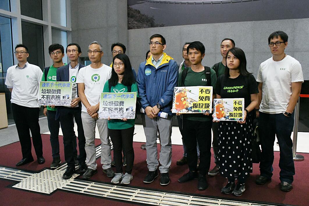 七個環保團體代表約見環境局官員檢討都市固體廢物徵費後向傳媒作簡報。記者 馮瀚文攝