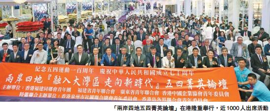 【香港商報网訊】記者呂明霞報道:為紀念五四運動100周年及慶祝中華人民共和國成立70周年,由香港福建同鄉會青年團、福建省青年聯合會、廣東省青年聯合會、香港中國企業協會青年委員會主辦的「兩岸四地五四菁英論壇」,日前於北角富臨皇宮舉行。該論壇以「融入大灣區走向新時代」為主題,旨在傳承弘揚五四精神,引領當代青年積極融入大灣區建設。當晚亦舉行了「慶祝五四青年節聯歡晚會」。