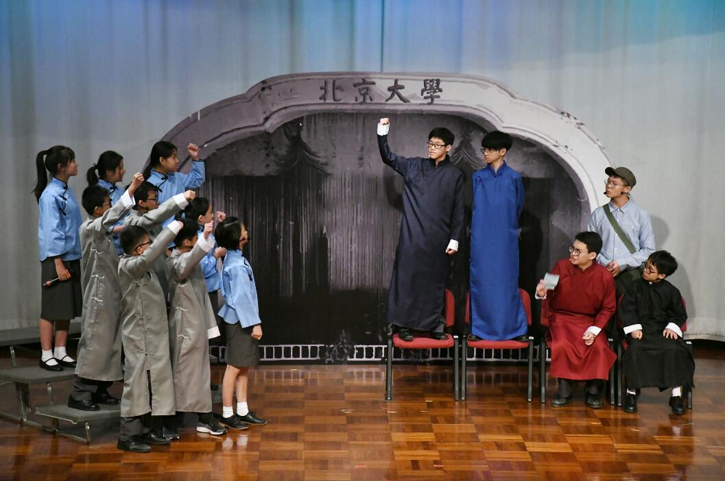 同學們以英語話劇形式再現五四運動歷程。記者馮瀚文攝