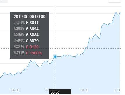 更多反映市場預期的人民幣對美元即期匯率5月9日在以6.7905開盤後,連續跌破6.80、6.81和6.82三個關口,16時30分收於6.8227,創下今年1月10日以來的新低,較前一交易日官方收盤價下跌511點,較前一交易日夜盤收盤價下跌396點;相比在岸市場,反映國際投資者預期的離岸人民幣對美元匯率的貶值更為兇猛。在以6.8080開盤後,離岸人民幣對美元匯率先後跌破6.81、6.82、6.83、6.84和6.85五個整數關口,一度跌破6.86關口,日內跌逾500點;同時,中間價也下跌並創近3個月新低,下調69個基點,報6.7665。