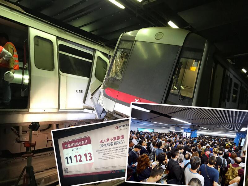 事發在3月18日凌晨,港鐵測試新信號系統期間,兩架列車在荃灣線中環站往金鐘方向路軌相撞,2名車長受輕傷,涉事列車則嚴重損毀。事故導致荃灣線來往中環至金鐘服務要暫停2日。另外,按照懲罰機制,港鐵另要撥出2500萬元作為明年的車費優惠。
