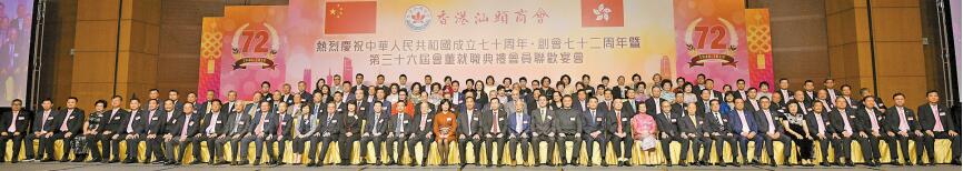 香港汕頭商會第36屆會董就職典禮會員聯歡宴會上,賓主大合照。 記者 蔡啟文攝