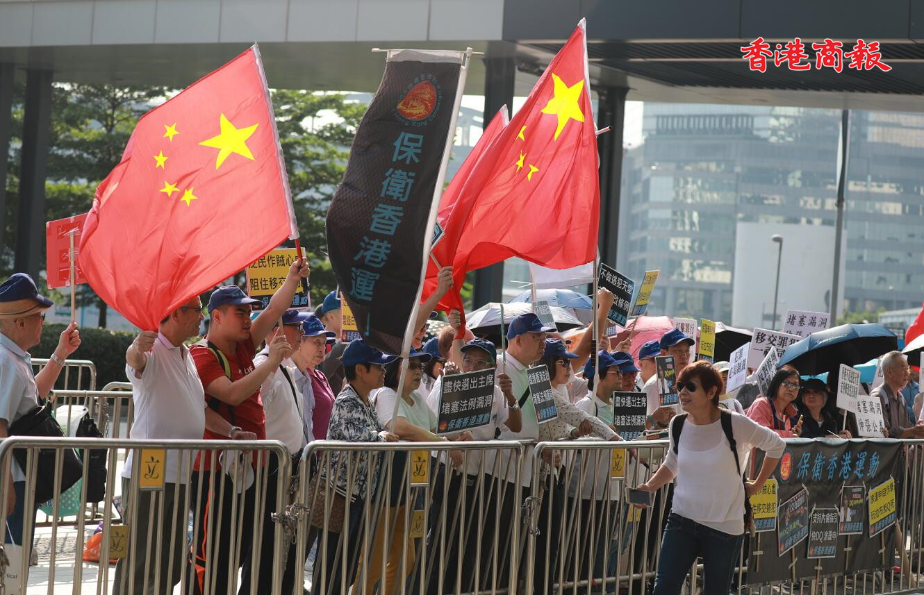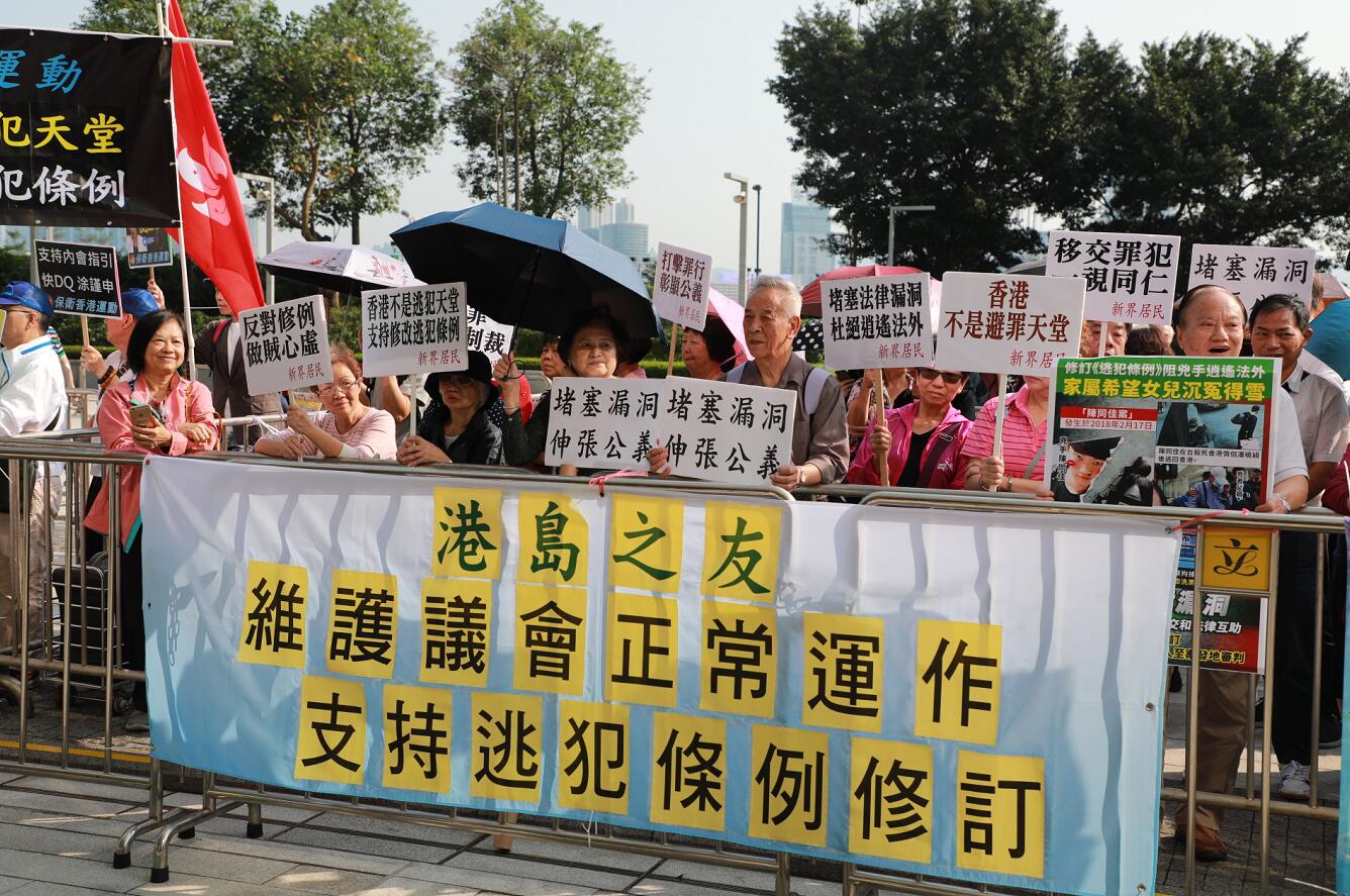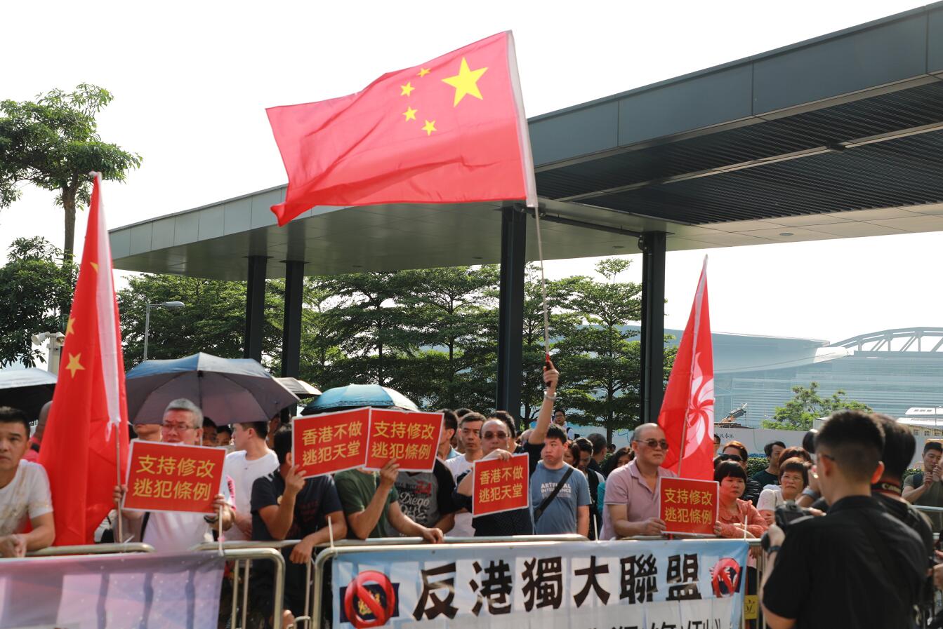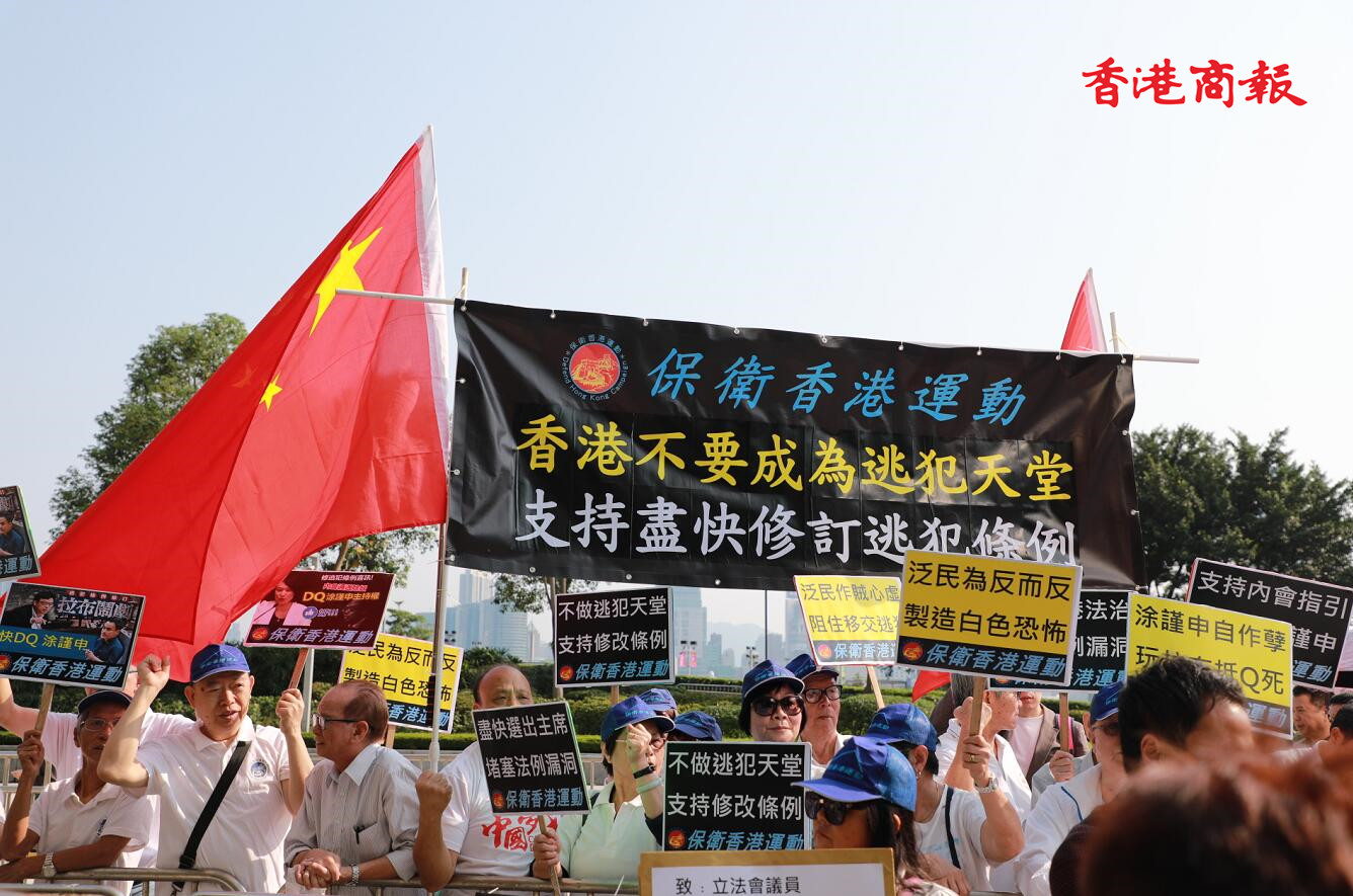 珍惜群組、保衛香港運動、港島之遊、反港獨大聯盟等多個愛國愛港團体,今早在立法會外示威,支持立法會修訂逃犯條例,譴責非建制派議員阻撓修例。