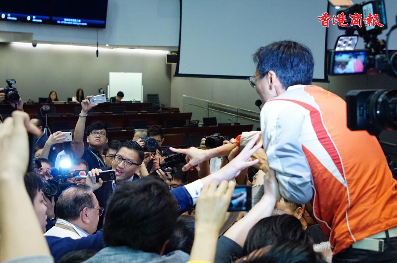建制派議員到達立法會開會,遭遇反對派議員方面挑釁,引來大批媒體,現場十分混亂。