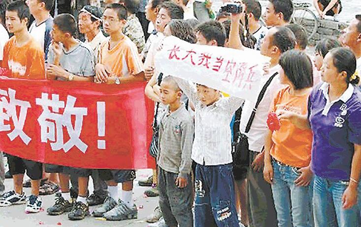 當年,最先抵達汶川災區的解放軍空降兵部隊給全國人民留下深刻印象,空降兵挺進什邡抗震救災97天,送別時,當地一個小孩高舉「長大我當空降兵」的橫幅站在人群中,被攝影師記錄下來,這個小孩就是程強。地震6年後,年滿18歲的程強面對高校錄取單和入伍通知書,毅然選擇了後者,決心履行兒時的承諾,巧的是,他服役的部隊,正是當年在什邡救援的「黃繼光生前所在連隊」。程強如今成長為「黃繼光班」班長,成為空降兵中「尖刀上的刀尖」。