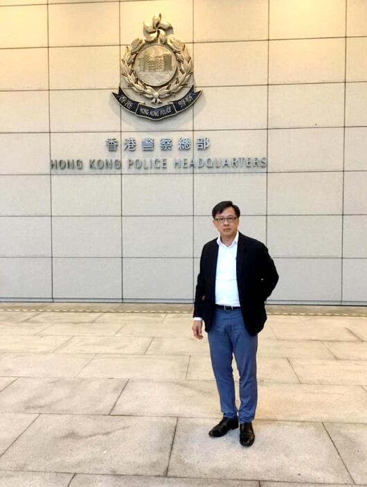 立法會議員何君堯到灣仔警察總部報案,控訴民主黨立法會議員涂謹申行使虛假文件。何君堯facebook專頁圖片