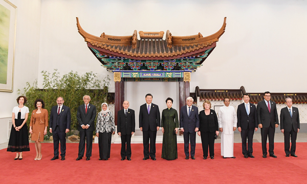 昨晚,國家主席習近平和夫人彭麗媛在北京人民大會堂舉行宴會,歡迎出席亞洲文明對話大會的外方領導人夫婦及嘉賓。這是習近平和彭麗媛同外方領導人夫婦及嘉賓合影。