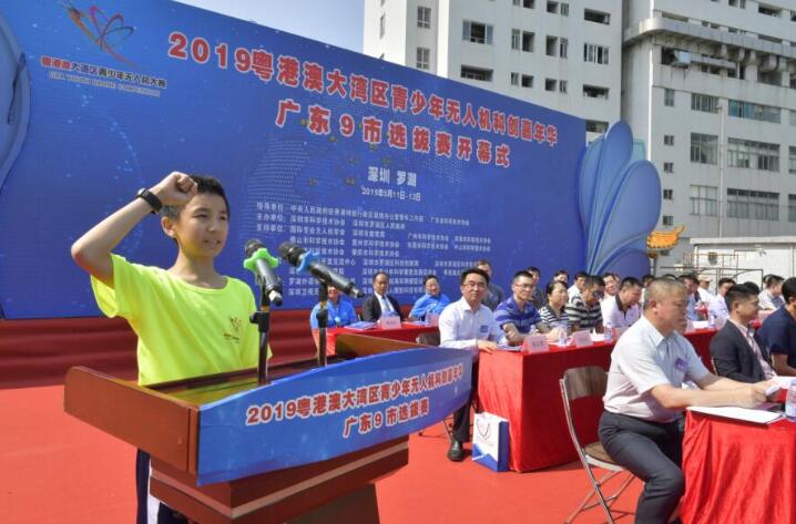 深圳市人大副主任、科協主席蔣宇揚同志,廣東省科協黨組成員、專職副主席吳煥泉同志,香港中聯辦青工部處長馮志勇同志,深圳市科協黨組書記、副主席林祥同志,深圳市羅湖區人民政府宋強副區長以及廣東省其他8市科協主要領導出席了該活的開幕儀式。蔣宇揚主席在開幕式中表示:「粵港澳大灣區青少年無人機科創嘉年華」既是深圳貫徹實施《粵港澳大灣區發展規劃綱要》的重要行動,也是大灣區的一場科普盛會。本次活動的舉辦不僅為大灣區青少年搭建了互動交流的學習平台,更將提升他們的創新意識和科學素養,對於促進校園科普文化建設、學生國防教育、愛國主義教育都有着重要的意義。