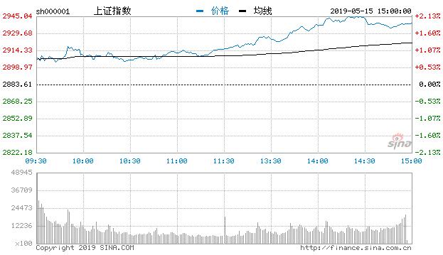 新浪财经讯 5月15日消息,今日开盘三大股指集体高开,早盘白酒、人造肉板块轮番拉升,各大股指纷纷跟涨,沪指收复2900点整数关口,创指站上1500点,午后题材板块集体拉升并全线飘红,个股呈普涨态势,两市股指再度走高,整体上全天呈现高开高走的走势,市场人气集聚回升,资金做多意愿明显增强,沪指两市合计成交额超5000亿元,较上一日有所放量,截止收盘,沪指报2938.68点,涨1.91%,深成指报9259.03点,涨2.44%,创指报1528.69点,涨2.28%。