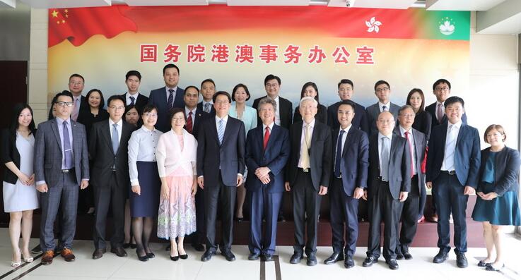 港澳辦主任張曉明15日會見以湯家驊為團長的香港﹁民主思路﹂訪京團,並一同合影。港澳辦網頁圖片