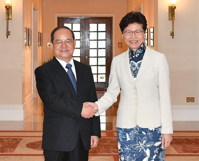 【香港商報网訊】行政長官林鄭月娥昨日下午在禮賓府與廣西壯族自治區黨委書記鹿心社會面,政制及內地事務局局長聶德權和運輸及房屋局局長陳帆亦有出席。