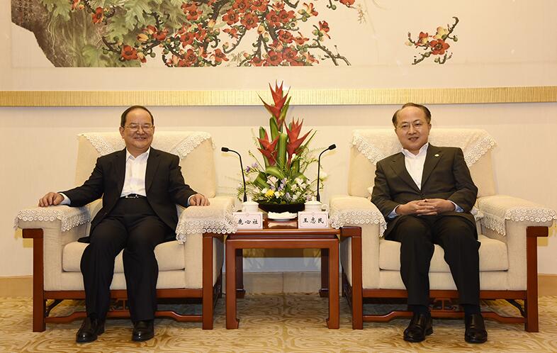 中聯辦主任王志民14日在辦內會見來港參加「2019廣西對接融入粵港澳大灣區——走進香港」推介會的廣西自治區黨委書記鹿心社一行。