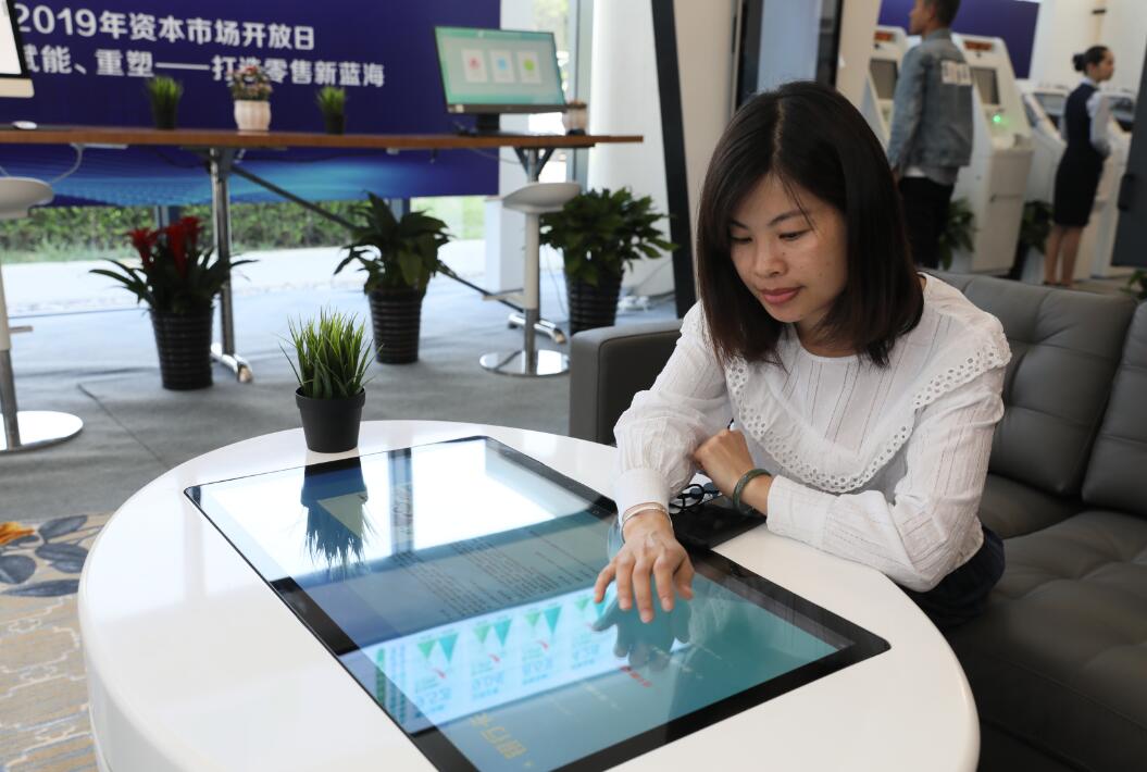 2019年資本市場開放日活動現場,郵儲銀行設置了迎賓服務、智能設備、零售銀行、金融理財、生活服務五大體驗區。