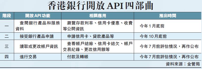 目前各大銀行都已基本落實了首階段開放API,而第三及四階段的落實時間,仍有待金管局在7月前評估情況,再作公布。