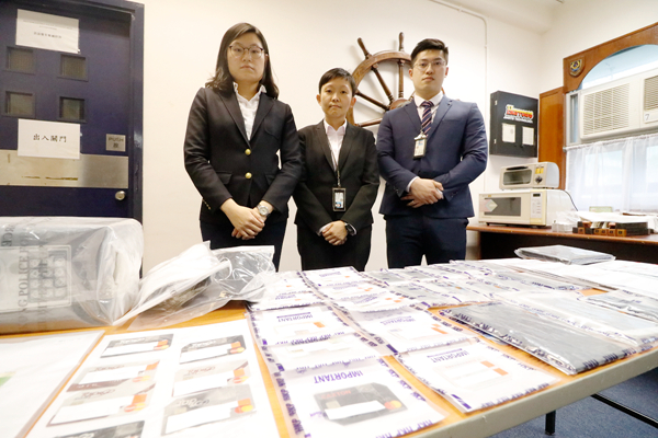 警方調查後,首先拘捕兩名本港男子(25歲及35歲),在其身上檢獲兩部手機,當中有其同黨用受害人過數的資料,其後再鎖定4名南亞裔人士,並在本月10日展開拘捕行動,探員掩至堅尼地城、深水埗和土瓜灣,共拘捕4名持行街紙的南亞裔男子(25至35歲),並在其寓所檢獲其犯案時的衣物,9張屬他人的個人證件,包括身份證、回鄉卡及駕駛執照、11部手機、兩部平板電腦、一部手提電腦、一個夾萬和少量現金。
