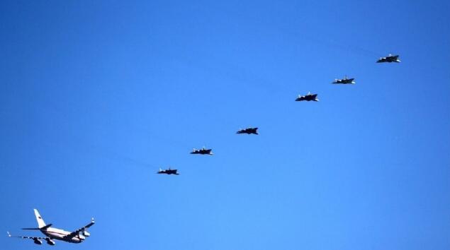 俄媒称,在普京专机飞往目的地的途中,俄军出动6架第5代战机苏-57伴随护航。