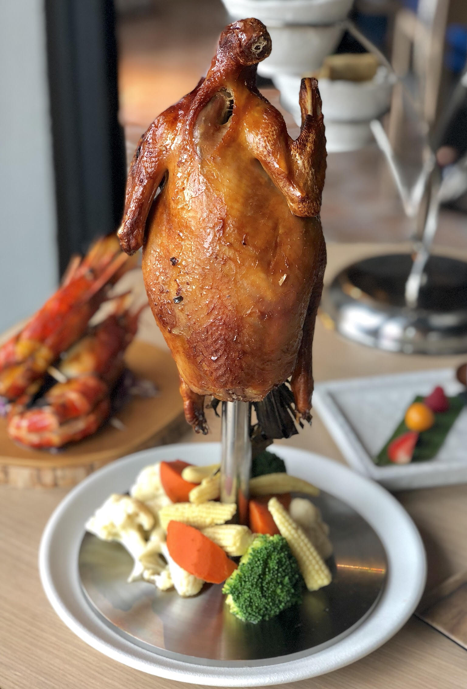 師傅先將葵花雞用秘製香料醃製一天至入味,再清湯浸泡並風乾一天,最後烤焗至皮脆肉嫩。