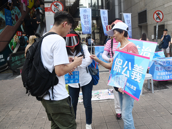 昨日下午,聯盟設於西九龍中心外的街站,不少路經的市民都紛紛上前向義工查問,亦有市民即場用二維碼簽名支持修例。有份聯署的退休人士張先生稱:「修例有助維持香港治安,保障市民安全。自己沒有犯法,根本不用害怕修例。」他又不認同反對派在立法會肆意破壞會議秩序的行為,認為「香港不能容許反對派想點就點」。