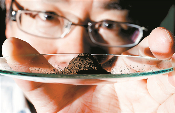 圖為學者展示從太平洋海底土壤中提煉出來的稀土。新華社/資料圖