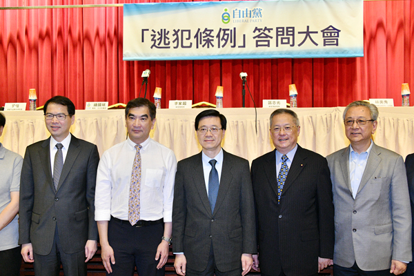 保安局局長李家超(中)昨出席自由黨舉辦的《逃犯條例》答問大會。記者馮俊文攝