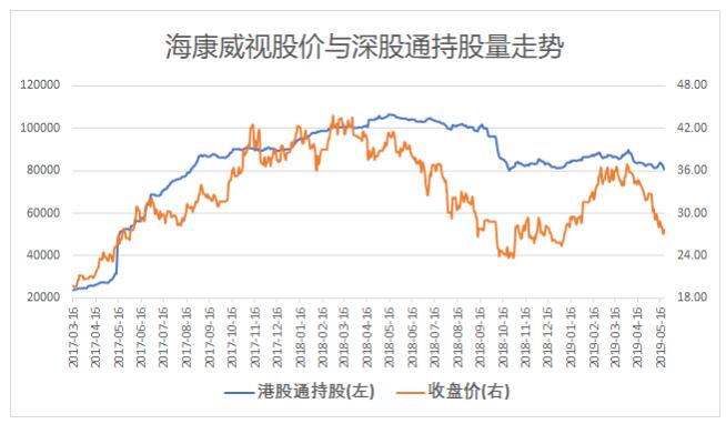 从港股机构通过深股通持有海康威视股份数量,与海康威视股价走势对比看;在2018年3月之前,港股机构持股量基本与海康威视股价走势同步,此时外资流入作为增量资金之一,对海康威视市值增加起到了一定的推动作用。
