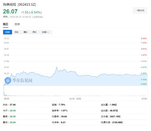 据华尔街见闻报道,5月22日,深市白马股海康威视开盘后一度跌停,让市场错愕。此前一天,公司股价还收涨2.26%。之前国内多家媒体报道称,海康威视海外经营环境或出现不确定性。