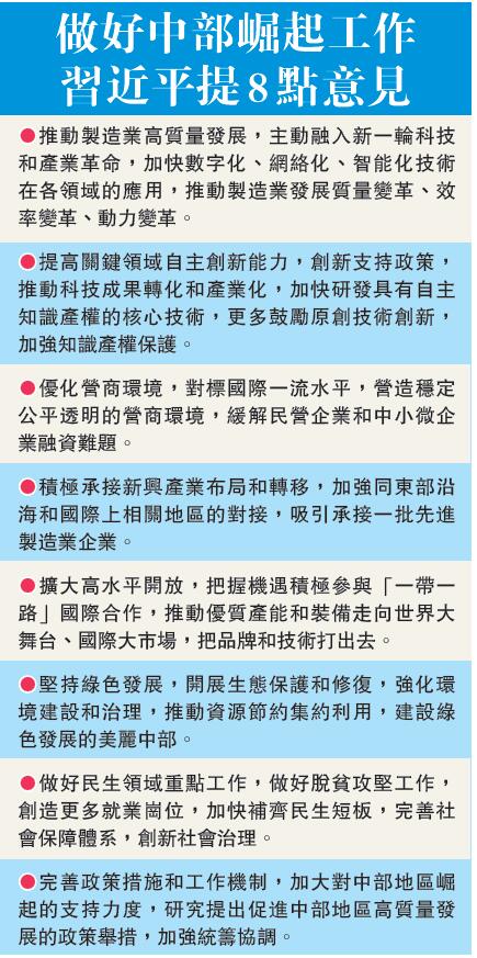 21日下午,習近平在南昌主持召開推動中部地區崛起工作座談會。